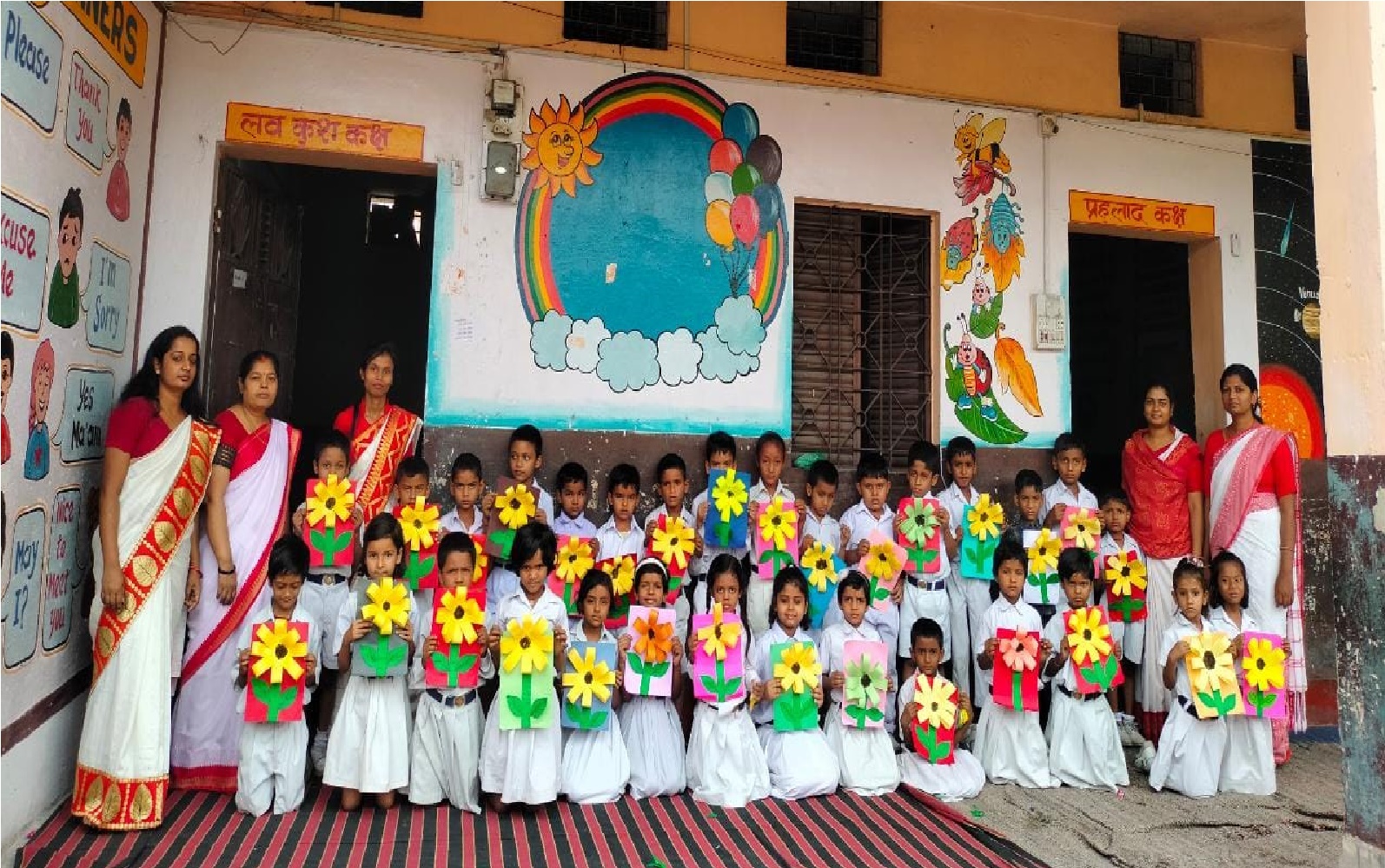 At the pre- primary level the process of getting ready for formal learning is through a variety of activities. Through the initial activities like clay-moulding, cutting, pasting, crayoning, painting, folding and so on, we focus on developing the steadiness of the hand, the flexibility of the finger muscles and training on focusing eyes. Outdoor games, action songs and eurhythmic activities develop the larger muscles, vocabulary building, pronunciation, enunciation etc. Activities related to grouping, sorting, categorizing, finding the odd one out, sequencing, differentiating between the similar and different pictures, objects and people, develop the ability to reason and apply what is learnt in real life situations. Free hand drawing enhances self-esteem, expression and creativity.